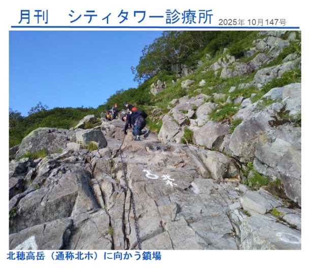 ここではほぼ垂直の岩を鎖を頼りに僅かな凹凸に足をかけて登ります。