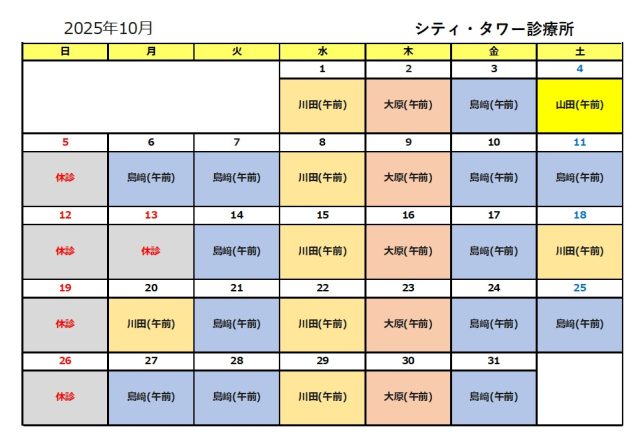 10月の外来予定