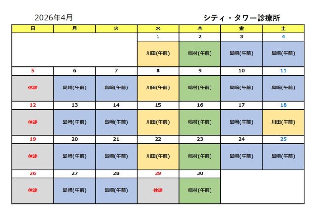 4月の外来予定です。